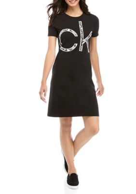 Womens Calvin Klein Short Sleeve Logo T Shirt Dress Boscov S