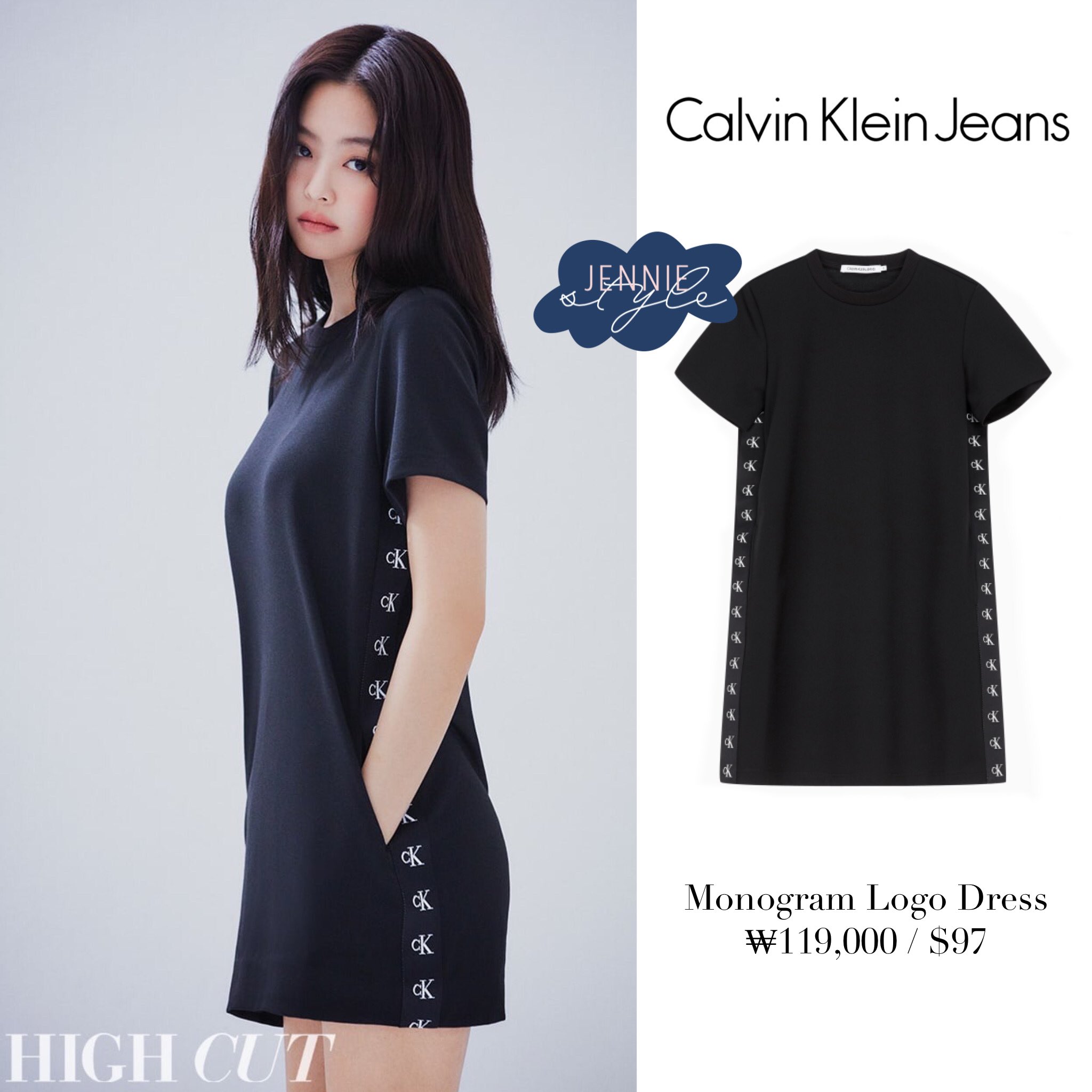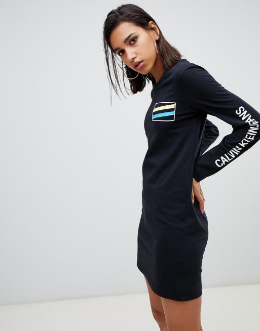 Calvin Klein Denim Institutional Box Logo T Shirt Dress In Black Lyst