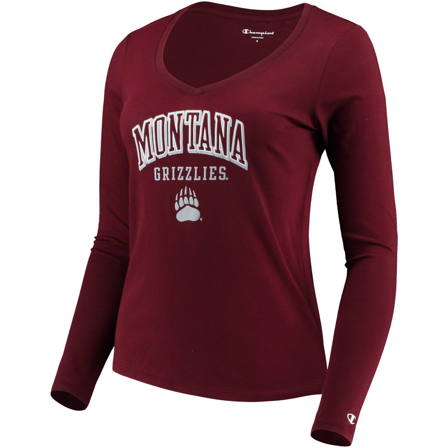 Women S Champion Maroon Montana Grizzlies Arch Logo Long Sleeve V Neck T Shirt