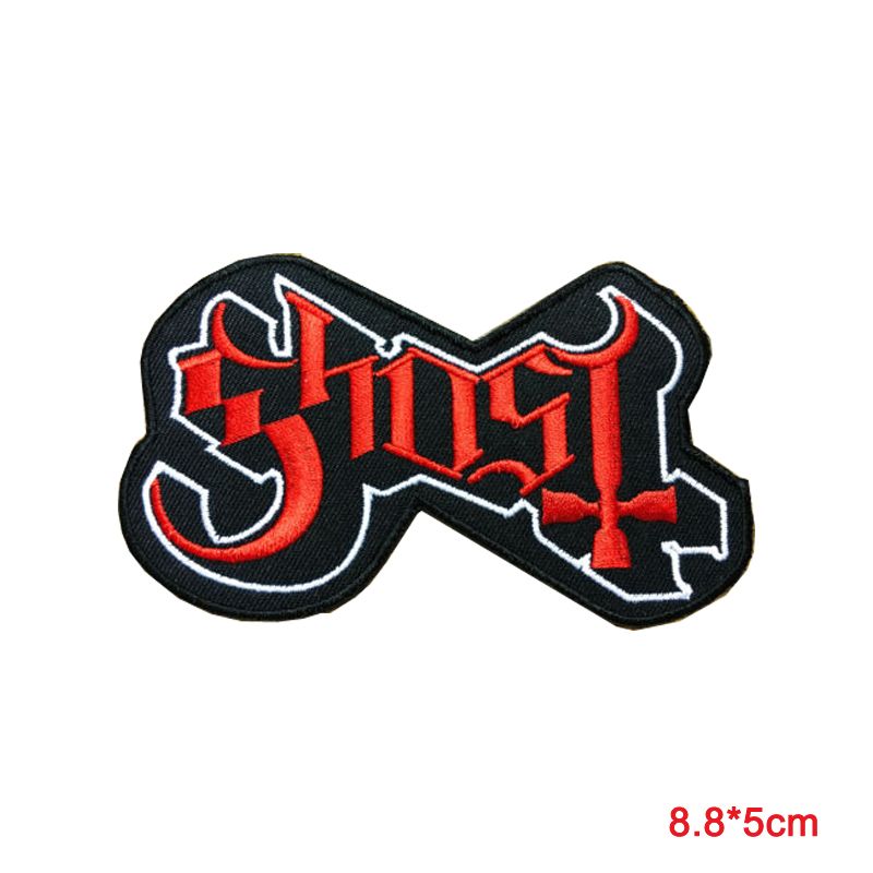 Amazon Com Ghost Bc Grucifix Cross Symbol Heavy Metal Doom Hard Rock Band Embroidered Patch Iron On 3 5 X 4 9 White Arts Crafts Sewing