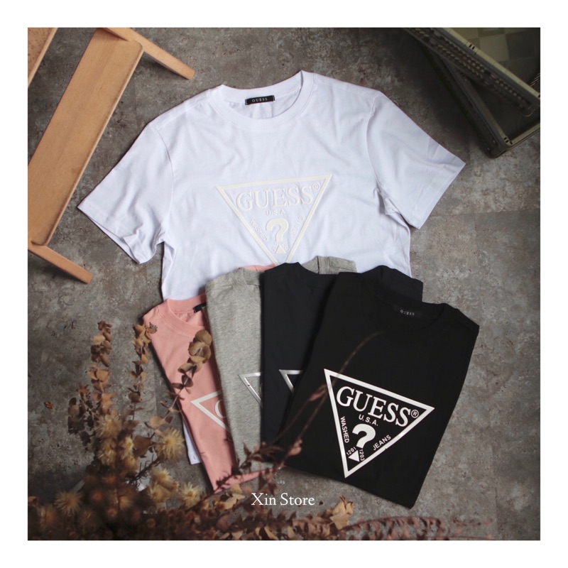 Guess Triangle Logo Tee Size Medium 10 10 Depop