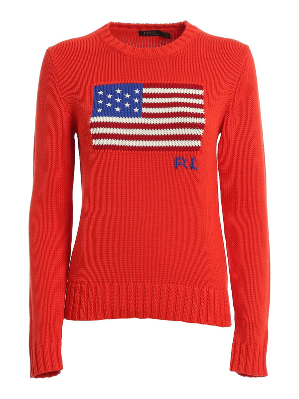 Polo Ralph Lauren American Flag Detail Cotton Blend Sweatshirt Sweatshirts Sweaters 211744524003