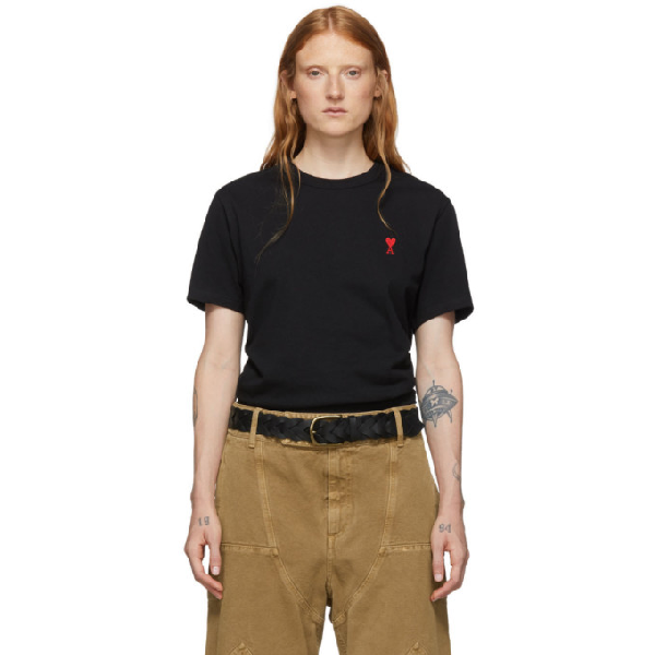 Comme Des Garcons Black Embroidered Heart Logo Tee